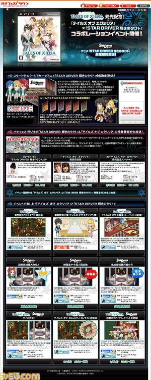 バンダイナムコゲームスが運営するアバターで遊べるキャラクターテーマパーク“バナフェス!タウン”で、2011年9月3日(土)〜9月9日(金)の1週間、プレイステーション3用ソフト『テイルズ オブ エクシリア』の発売を記念したバーチャルイベントが開催される。