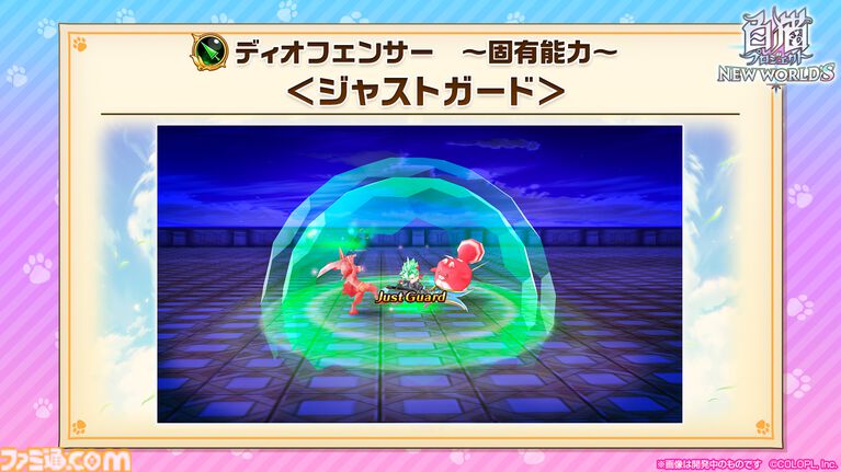 なお、ガーディアンでも使用できたジャストガードも備えている。しかしディオフェンサーで相手の攻撃に合わせて画面を長押しして受け止めると、敵から受けるダメージを大幅に軽減し、”つかみ攻撃”、”状態異常攻撃”を防ぐガードフィールドを展開するという、新たな効果を獲得している。