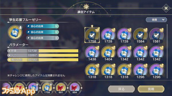 燃費対策は、学生応援ブルーゼリーが最適。火力、滑空性能もある程度上げてくれるため、学生応援ブルーゼリーを大量に作っておけば一気に楽になります。