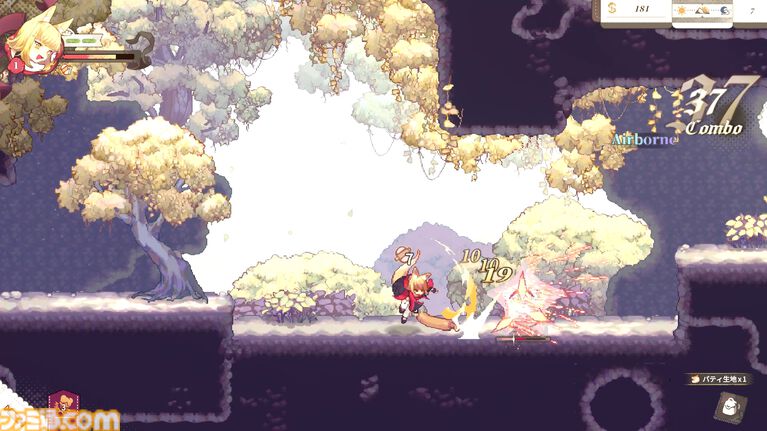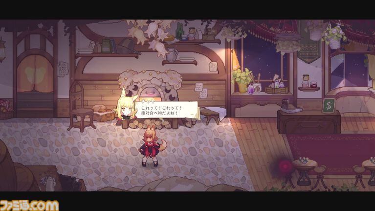 冒頭でも述べた通り、本作のビジュアルはドットグラフィック。かわいらしさと雰囲気のよさがバツグンで、キャラクターたちが生き生きと動いてくれます。動作にあわせてゆらめく尻尾はもちろん、とくに表情の作りこみが細かく、泣き顔や驚き顔がコミカルで非常にキュート。そのモーションひとつひとつに、「こう動くとかわいい!」という、制作者の繊細なこだわりが感じられます。