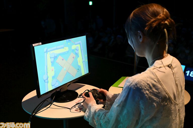 そのほか、金色のブーメランを一定時間持ち続けたプレイヤーが勝利となるバトルロイヤルモードにも挑戦。ブーメラン持ちを集団で取り囲むことになるわけだが、逃げるプレイヤーがステージ内のギミックを巧みにかわしながら安置エリアギリギリを走ったり、隠れて逃走したりと目を見張るプレイが続出。会場一体となってプレイに一喜一憂しながら盛り上がった。