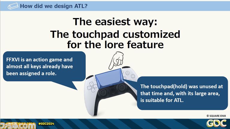 「『FF16』には数多くの独特の用語が出てきます。厳選した情報を、アクセスしやすいUIを通して提供することはとても重要でした」と語られた。