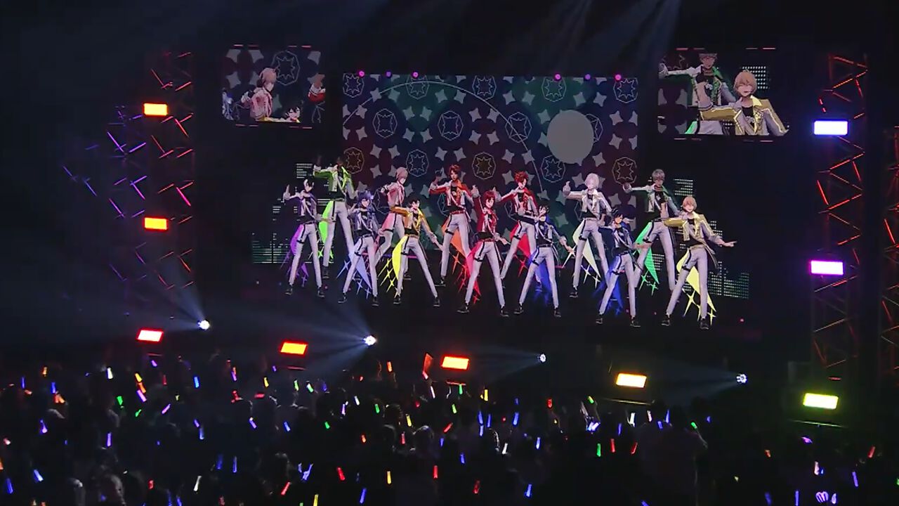 • EN01. Just Follow Stars(荒咬オウガ/律可/夕刻ロベル/緋崎ガンマ/羽継烏有/アルランディス前列:影山シエン/水無世燐央/夜十神封魔/花咲みやび/奏手イヅル/アステル・レダ/岸堂天真)