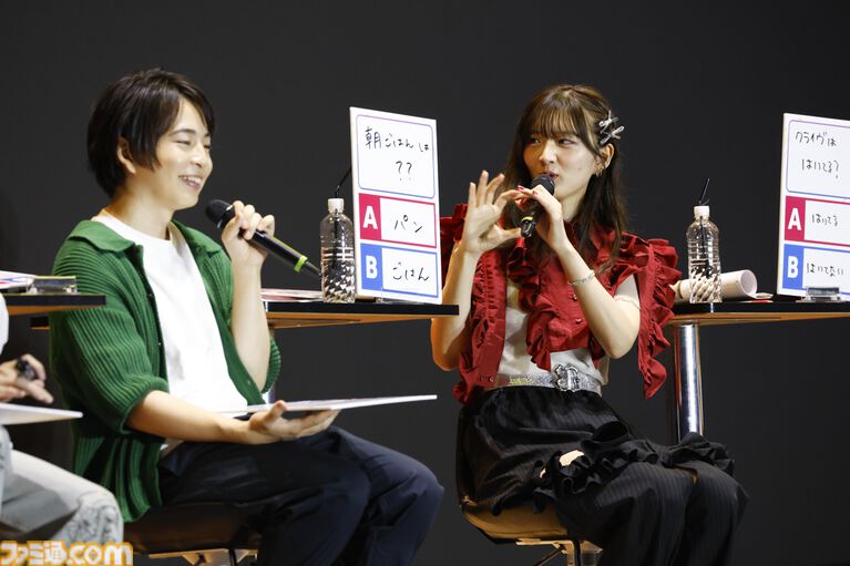 パンに46%、ご飯に54%の回答が入り、見事にチャレンジは成功。また、エキシビションとして、三浦さんが制作した“マッチングアプリで出会うとしたら、クライヴか、ヴァルアスか”という問題に挑戦することに。
