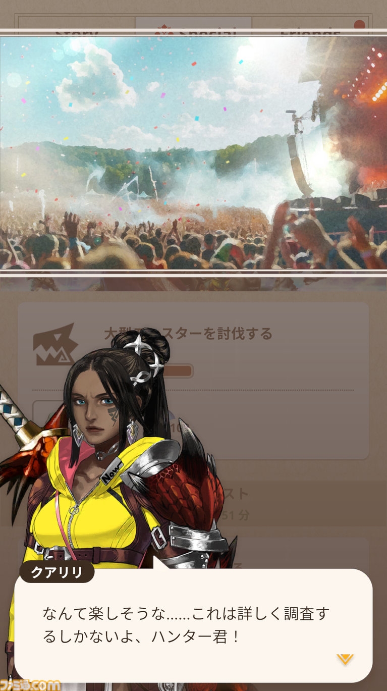 鼻息荒く語り始めようとした……そのとき!! 我がスマホの『モンハンNow』で、例の三文芝居が始まってしまったのであったww