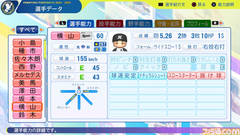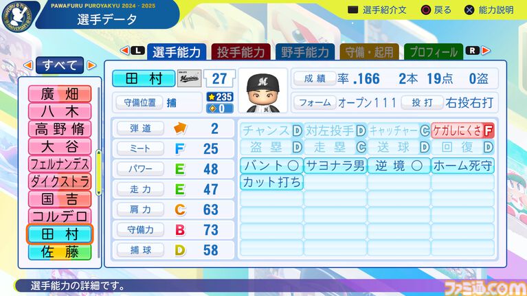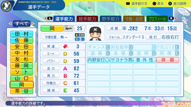千葉ロッテマリーンズ選手能力一覧