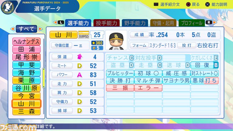 福岡ソフトバンクホークス選手能力一覧