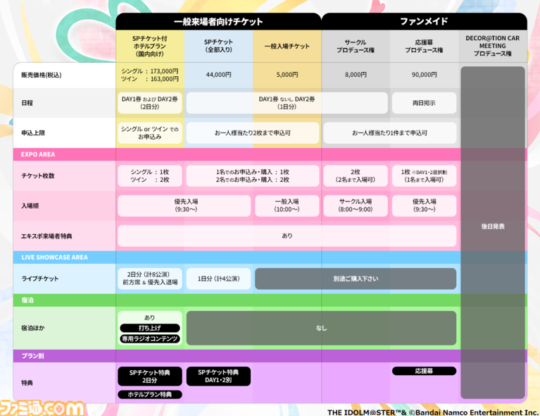 アイマスエキスポでは多くのチケットの種類やプロデュース権がございます。