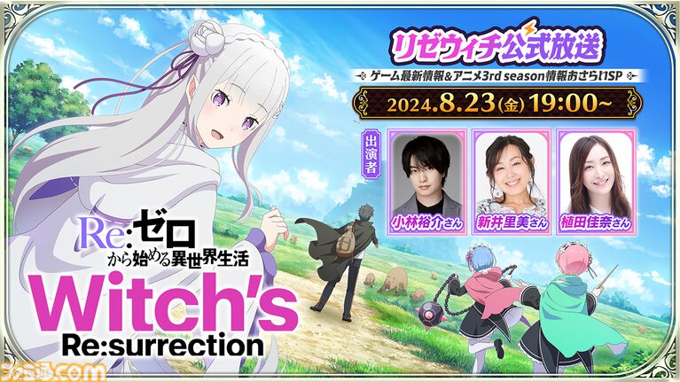 『Re:ゼロから始める異世界生活』新作公式スマホゲーム『Witch's Re:surrection』とTVアニメ3rd seasonの情報をお届けする公式番組を8月23日にプレミア公開!