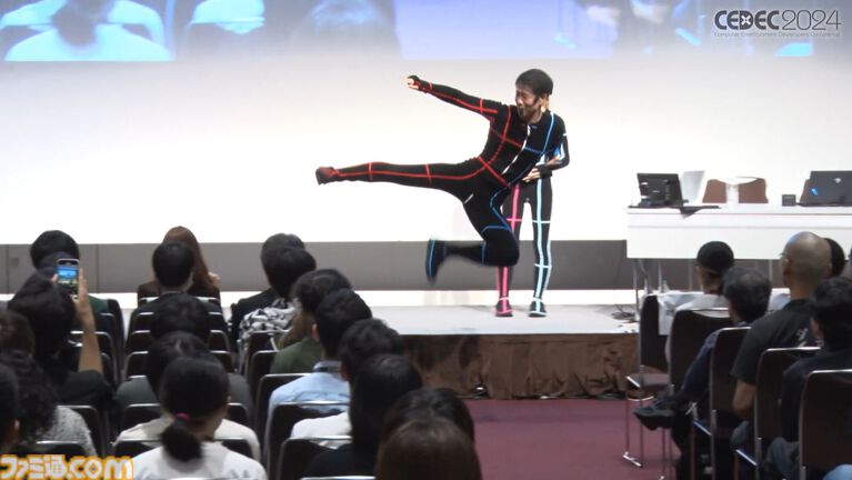 “CEDEC”と言えば技術系のカンファレンスであるため、基本は登壇者がスライドなどを使用してトークベースで講演するのが一般的だ。しかし、本講演はゲームのモーション、キャラクターの動きに関するものなので、登壇者たちが実際にアクションを交えてのカンファレンスが実施。ステージを飛び越えてのド派手な実技を披露することもあり、会場からは拍手が巻き起こるなど、“CEDEC”では珍しい形で盛り上がりを見せていた。