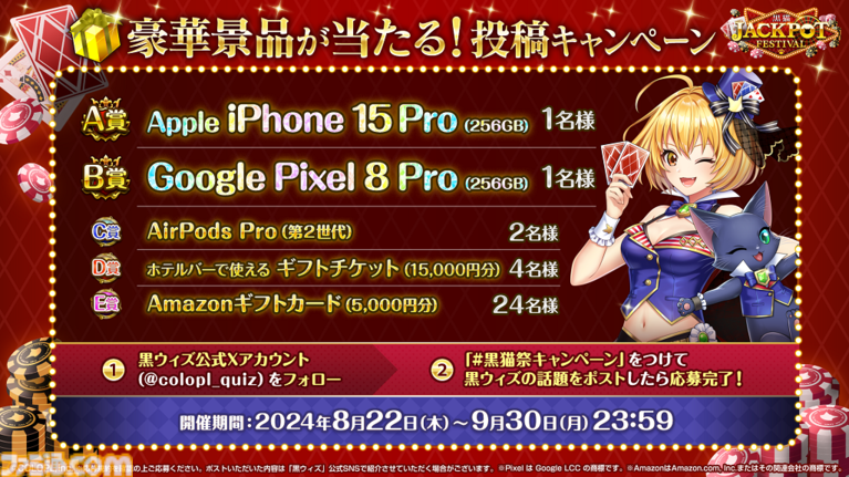 『クイズRPG 魔法使いと黒猫のウィズ』にて運試し!?豪華7大キャンペーン「黒猫JACKPOT FESTIVAL」開催!
