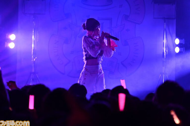 そして、花岩さんは王道のロックナンバー“Wake up!!”が会場を盛り上げる。笑顔溢れるパフォーマンスと熱い思いを込めたシャウトするような歌声に、“プロデューサー”のボルテージはMAX。「ハイ!ハイ!」と熱いコールで応援し、最後は大きな歓声が上がっていた。