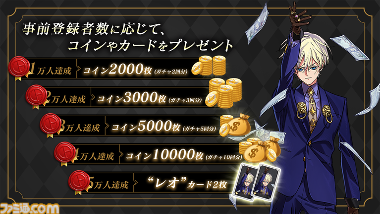 事前登録者数が5万人を突破しましたので、ゲームをプレイするみなさまに登録者数に応じたコインやカードをプレゼントいたします。
