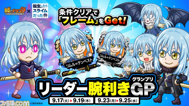 コラボ限定フレームをゲット!TVアニメ『転生したらスライムだった件』コラボ「リーダー腕利きGP」『城とドラゴン』で9月23日(月)より開催!