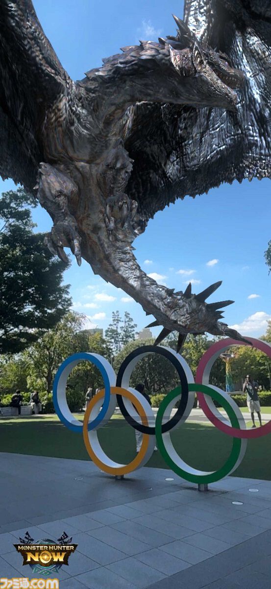 そして、このオリンピックモニュメントのところにいると思しきリオレウス希少種のクエストに入り……!