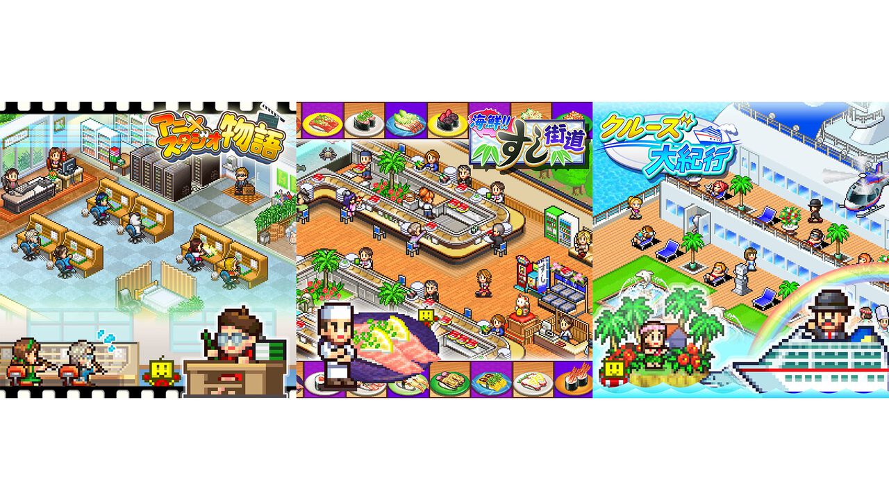 『アニメスタジオ物語』や『海鮮!!すし街道』、『クルーズ大紀行』が50%オフ。『大海賊クエスト島DX』、『バスケクラブ物語』、『開店デパート日記2』、『アパレル洋品店』が30%オフになっている。