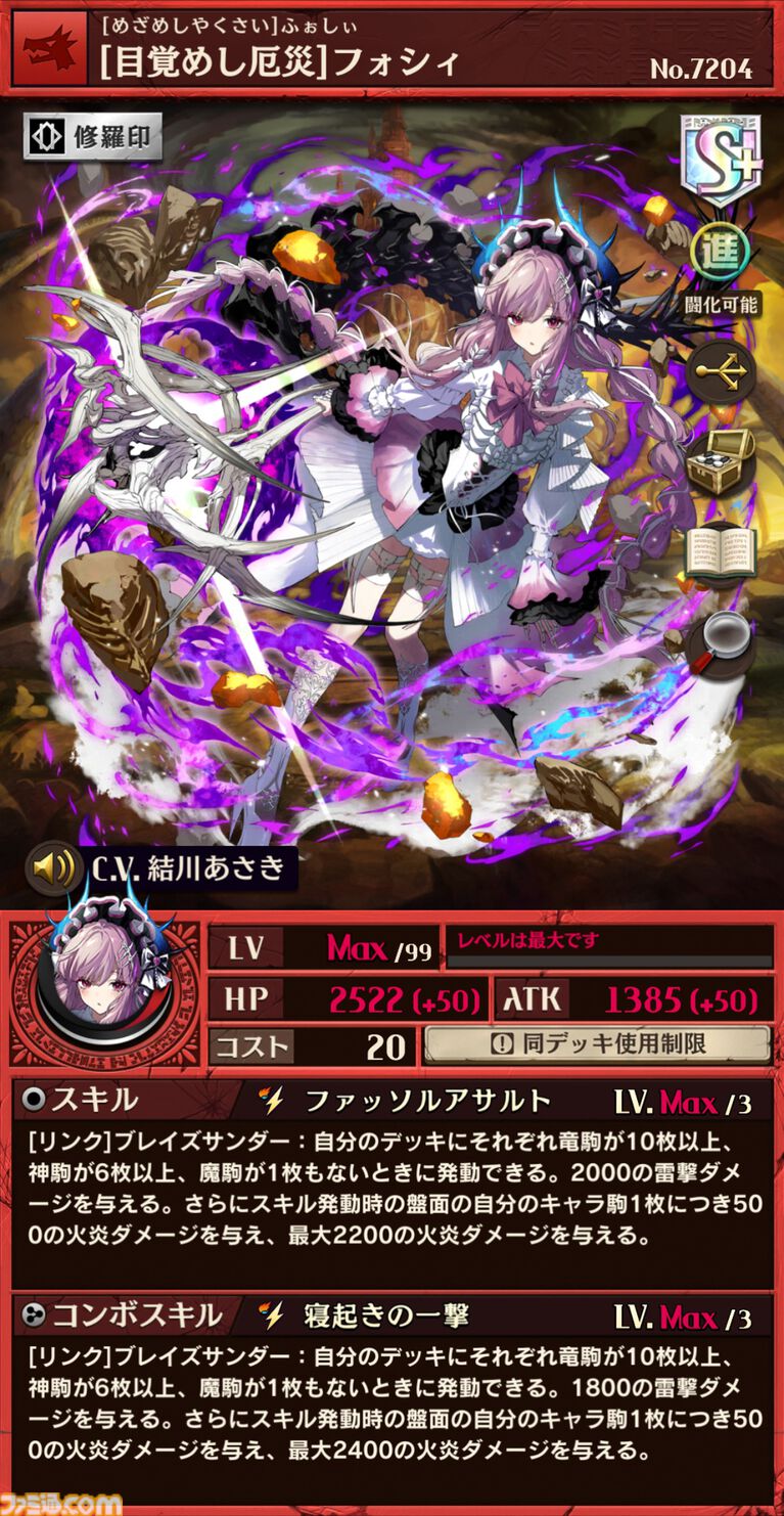どうしても1手遅れやすいため、強駒あたりでAの召喚キャラが出てきたら化けるのではないでしょうか。今後に期待したいところです。