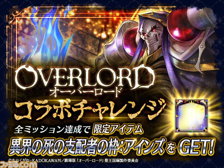 コラボ第1弾として新ユニット“アインズ・ウール・ゴウン”と新アーク“OVERLORD”、第2弾として新ユニット“アルベド”と新アーク“プレアデス”がピックアップガチャに登場。また、全ユーザー協力型のイベント“異界の死の支配者”のほか、コラボチャレンジ、コラボログインボーナスなども開催中だ。