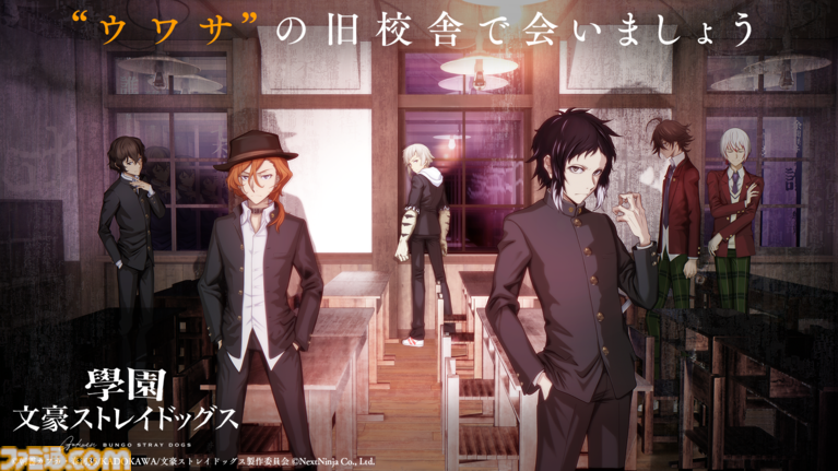 株式会社NextNinjaは、TVアニメ「文豪ストレイドッグス」のスマートフォン向けゲーム『學園文豪ストレイドッグス』の第一弾PV(Full ver.)・アーティストコメント・あらすじが初公開されたことをお知らせいたします。