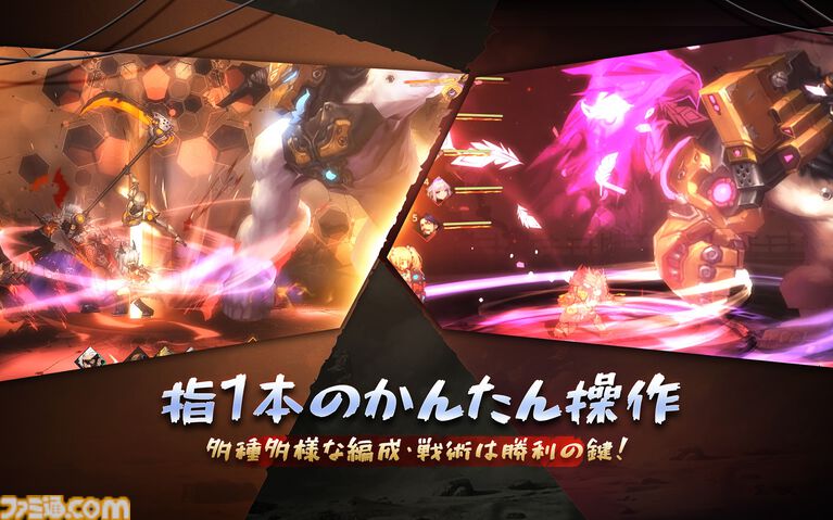 自分だけのオリジナルアバターを作り出すことができ、指一本で遊べるお手軽なバトルは5人1組のパーティー編成と戦略が勝利の鍵となる。
