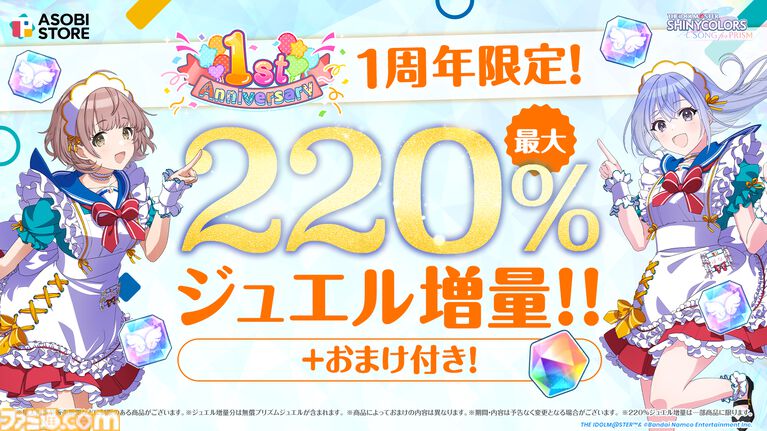 ASOBI STOREでプリズムジュエルを販売中!1周年限定!最大220%ジュエル増量商品も登場!
