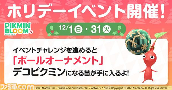 2024年12月1日、『ピクミン ブルーム』に今年最後の大型チャレンジ“ホリデーイベント”が開幕。