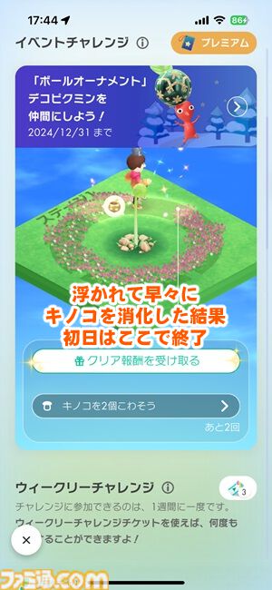 否応なしに年末なんだと思い知らさせる中、さっそく当イベントの主軸であるイベントチャレンジを開始したのだけど……