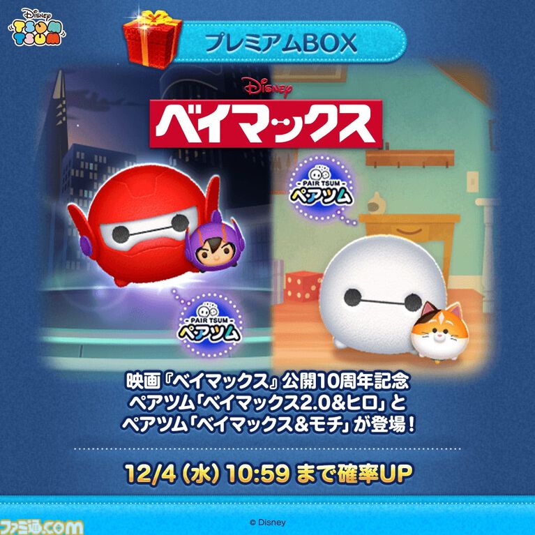 【LINE GAME】映画『ベイマックス』公開10周年記念、『LINE:ディズニー ツムツム』12月の新ツムは「ベイマックス2.0&ヒロ」と「ベイマックス&モチ」が登場!