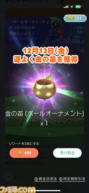 2024年12月1日から始まった『ピクミン ブルーム』年内最後の長期企画・ホリデーイベントも13日目。