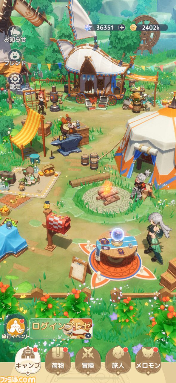 スキルや“メロモン”のガチャには、主人公の休息地でもあるキャンプからトライできる。