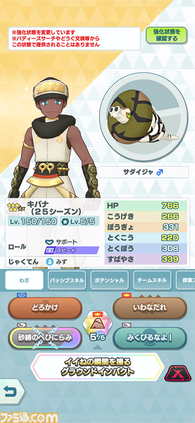 「すなあらし」を何度も展開でき、シンクロわざで相手全員の能力を下げるサポート!「★5キバナ(25シーズン)&サダイジャ」が登場!
