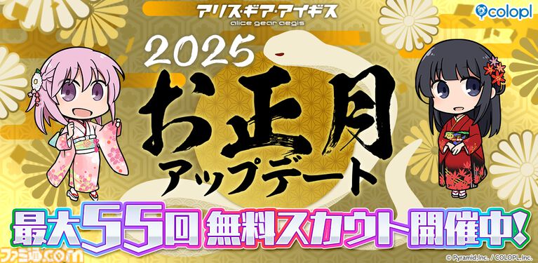 株式会社コロプラ(代表取締役社長 上席執行役員 CEO:宮本貴志、本社:東京都港区、以下「コロプラ」)は、スマートフォン向けゲーム『アリス・ギア・アイギス(以下、アリスギア)』にて、2025年1月1日(水)0:00より「お正月アップデート」を開催しております。
