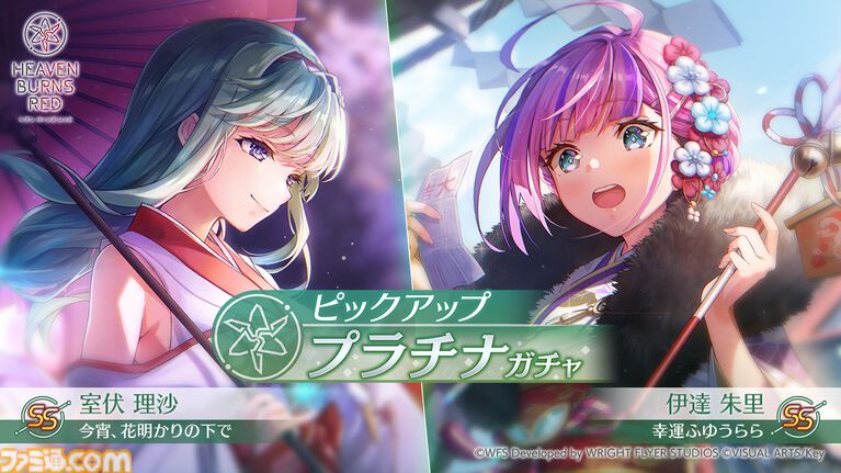 以下、プレスリリースを引用ライトフライヤースタジオ × Keyが贈る、ドラマチックRPG『ヘブンバーンズレッド』正月衣装のSS伊達朱里/室伏理沙が登場!ピックアッププラチナガチャ開催!