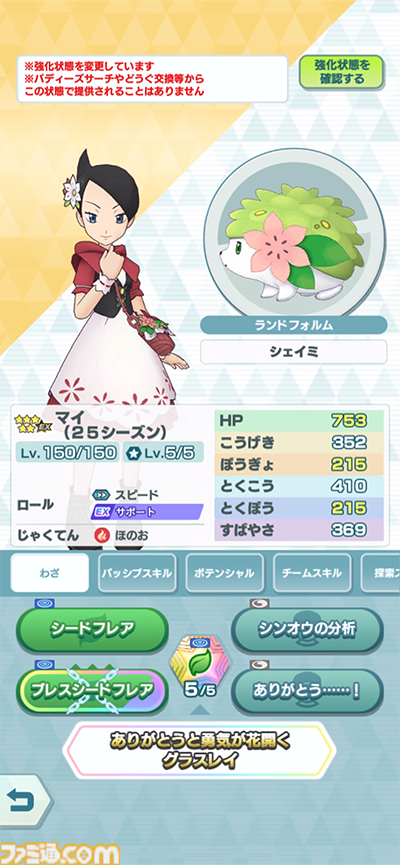 「シンオウサークル」を展開でき、シンクロわざで味方を強化し、相手の 能力を下げるスピード!「★5マイ(25シーズン)&シェイミ」が登場!