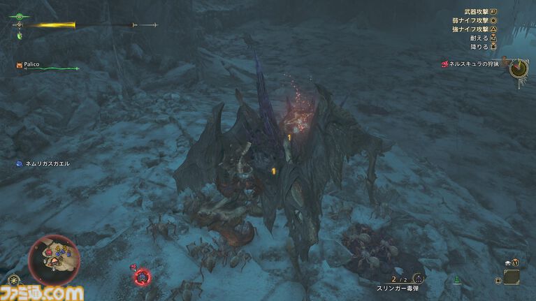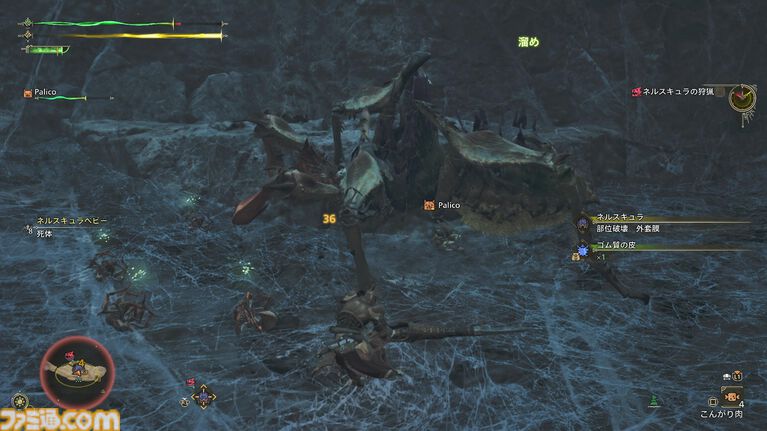素早い動きや毒や糸による攻撃、さらには爪部分の肉質の硬さなど、ネルスキュラの手ごわさは本作でも健在だと感じた。製品版では火属性の武器や各種アイテムなどをしっかりと準備してから臨む所存。