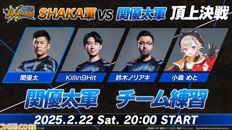 『ONE PIECE バウンティラッシュ』 2月24日(月·休)19時より 「SHAKA軍VS 関優太軍頂上決戦」 の配信が決定!