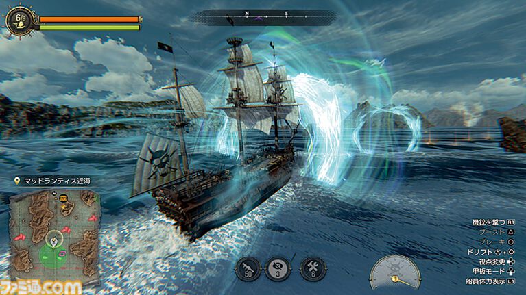 - ブーストゲージ:ゲージ最大時に船を急加速させるブーストが使用でき、加速中はドリフトも可能。ゲージは時間で回復する。