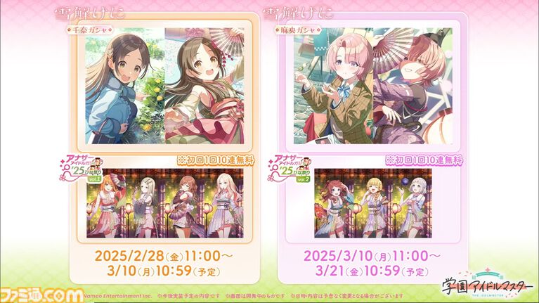 ‟とりかえばや ひな祭り”のイベント報酬では月村手毬、ガシャでは倉本千奈、有村麻央を入手できる。