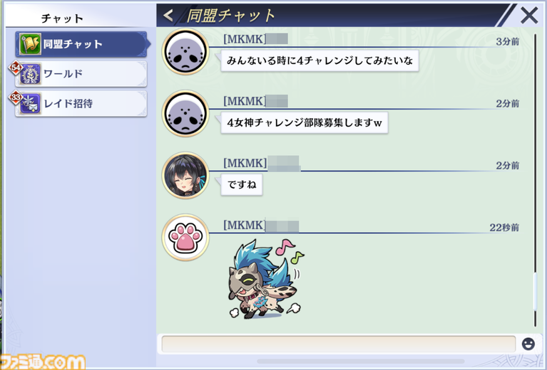 2週間ほど前の紅き救済の女神降臨時、同盟メンバーがたくさん集まっている状況下でチャットにつぎのような発言を投下したのである。