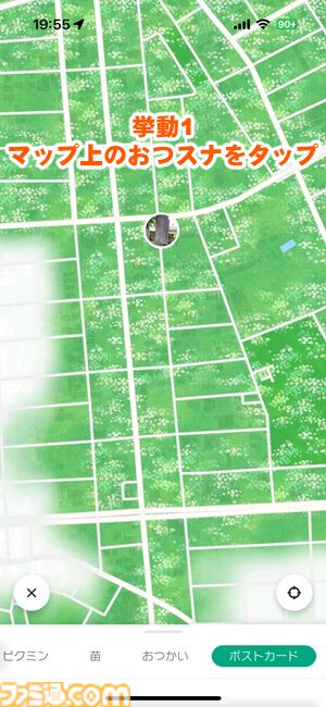 マップ上に記録された“おつかいスナップ”を触ると対象のポストカードがピックアップ。