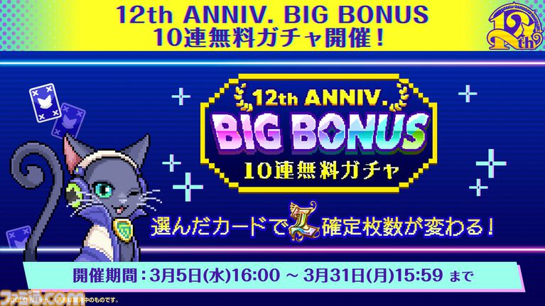 ■12th ANNIV. BIG BONUS10連無料ガチャ