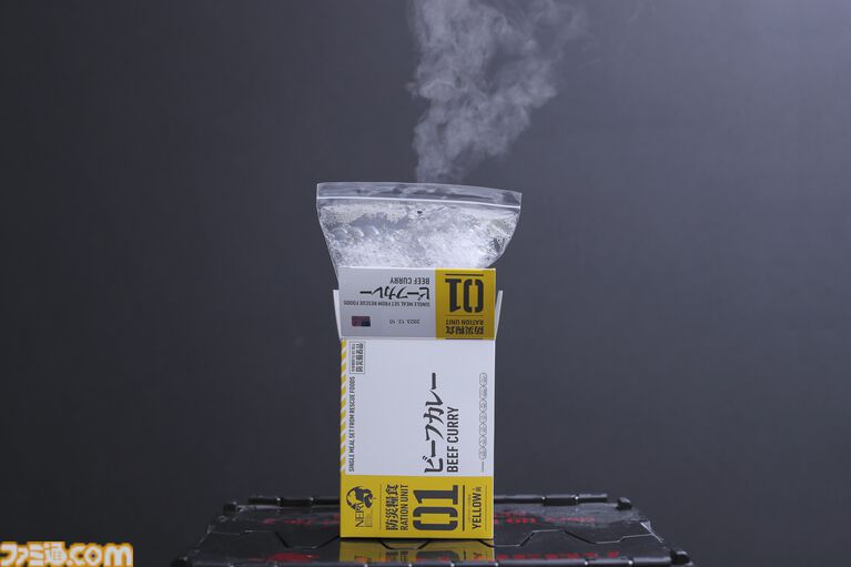 同梱の白米とおかず(ラインナップ全5種)は、レーション(配給された食糧)をイメージした包装になっており、外箱パッケージと包装には新劇場版のNERVマークと、「特務機関NERV指定」の文字が入っています。