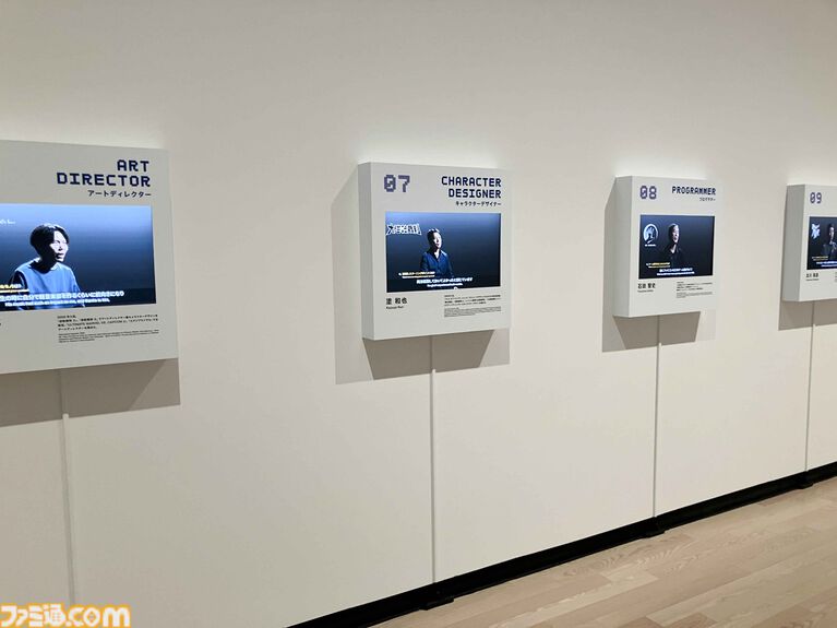 キャラクターパレードを抜けると、これまでのカプコンの歴史を振り返る年表やメインアート、パッケージ、主要キャラの紹介エリアへ。なかには当時の実物ポスターや関連タイトルのフィギュア&小道具なども用意されていた。