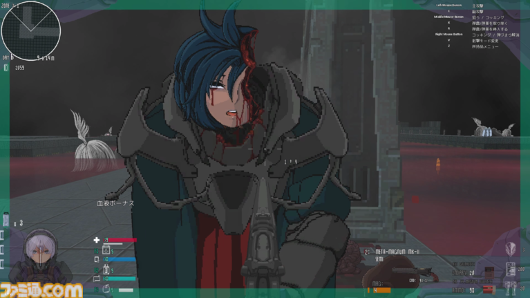本作のそれは、ただ首や手足がちぎれて血が飛び散るなどといった生ヌルいものではない。頭を撃てば頭の半分だけが吹き飛んだり、胴を撃てば肋骨とはらわたが半端に飛び出たり、榴弾が爆発すれば上半身だけえぐり取られたりする。壊れていく人体は多段階に細かく描かれるし、ゲームオーバー時には殉教者の臓物が画面いっぱいにぶちまけられるという、ほとんど執着に近いこだわりゴア表現だ。