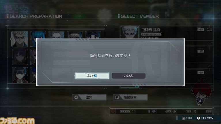 ストーリーの進行で挑む探索では目的地にたどり着けばクリアーで、自由行動パートでの探索は任意のタイミングで学園に帰還可能だ。全員のHPがゼロになると探索が強制終了し、所持アイテムを半分失ってしまう。