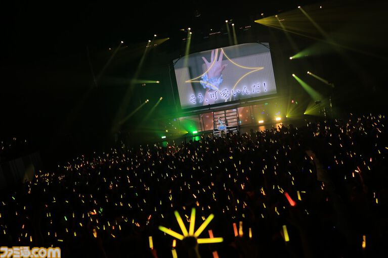 その後はMCへ。それぞれが担当するアイドルらしいセリフとともに自己紹介を行い、そのたびに歓声と拍手があがった。ライブコンセプトの説明や松田さんへの「おかえり!」など、プロデューサー陣を盛り上げるような演出に。