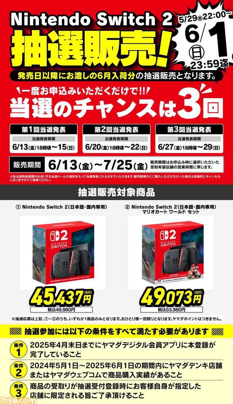 当選チャンスは3回あり、当選発表の1回目は6月13日18時~15日、2回目は6月20日18時~22日、3回目は6月27日18時~29日に行われる。
