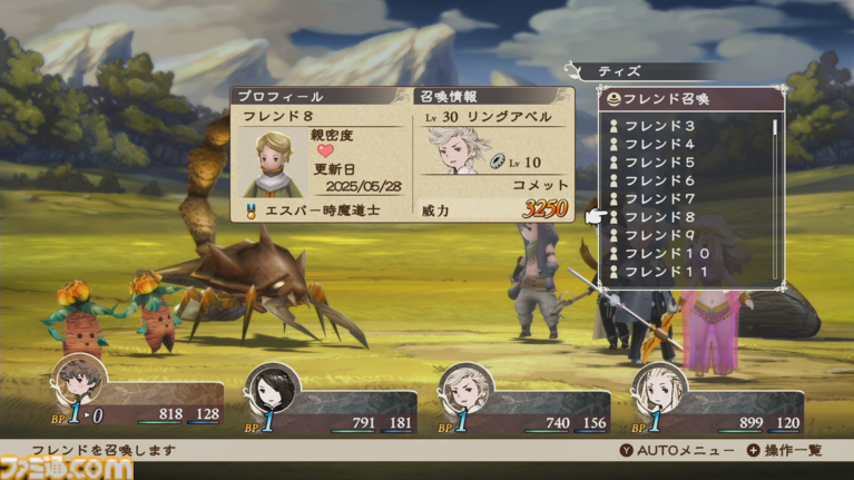 プレイヤーはプロフィールを設定し、自分の技とともに世界に向けて配信できます。そのカードを持ったNPCが、ゲーム内の街にランダムで配置されますので、皆さんは“街を歩くことで、ほかのプレイヤーとすれちがう”ような体験ができるんです。「ほかのみんなも冒険しているんだな」という感覚を楽しんでもらえるとうれしいですね。それともちろん、フレンド機能も活かしています。ハード本体の機能でフレンド登録しているユーザーどうしで、フレンド召喚やアビリンクの仕様を楽しんでいただけます。