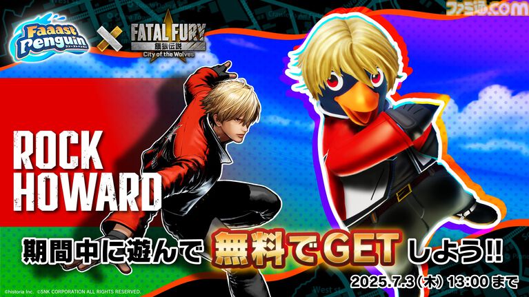 ファーストペンギン、『餓狼伝説 City of the Wolves』コラボが6月12日から開始!「ロック・ハワード」と「K.O.」を無料で手に入れよう!