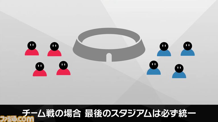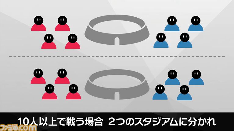 また、本作では最大16人のプレイヤーが8人ずつの2チームに分かれて対戦をする“チーム戦”が存在し、チーム戦ではチーム間でパーツが共有され、最後のパーツを拾ったメンバーが搭乗することになるようだ。